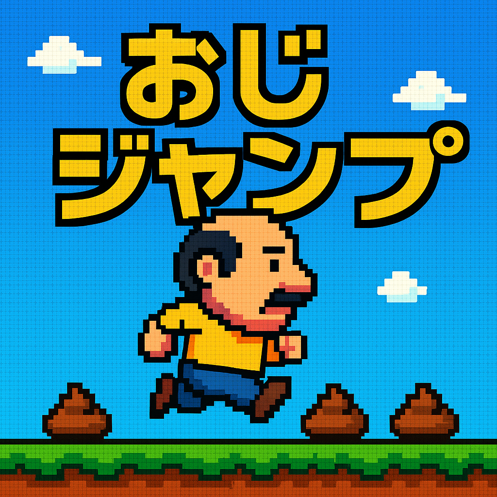 ジャンプできないタイミングも おじさんをタップ/スペースキーで跳ばし、(たまに飛べないバグあり)